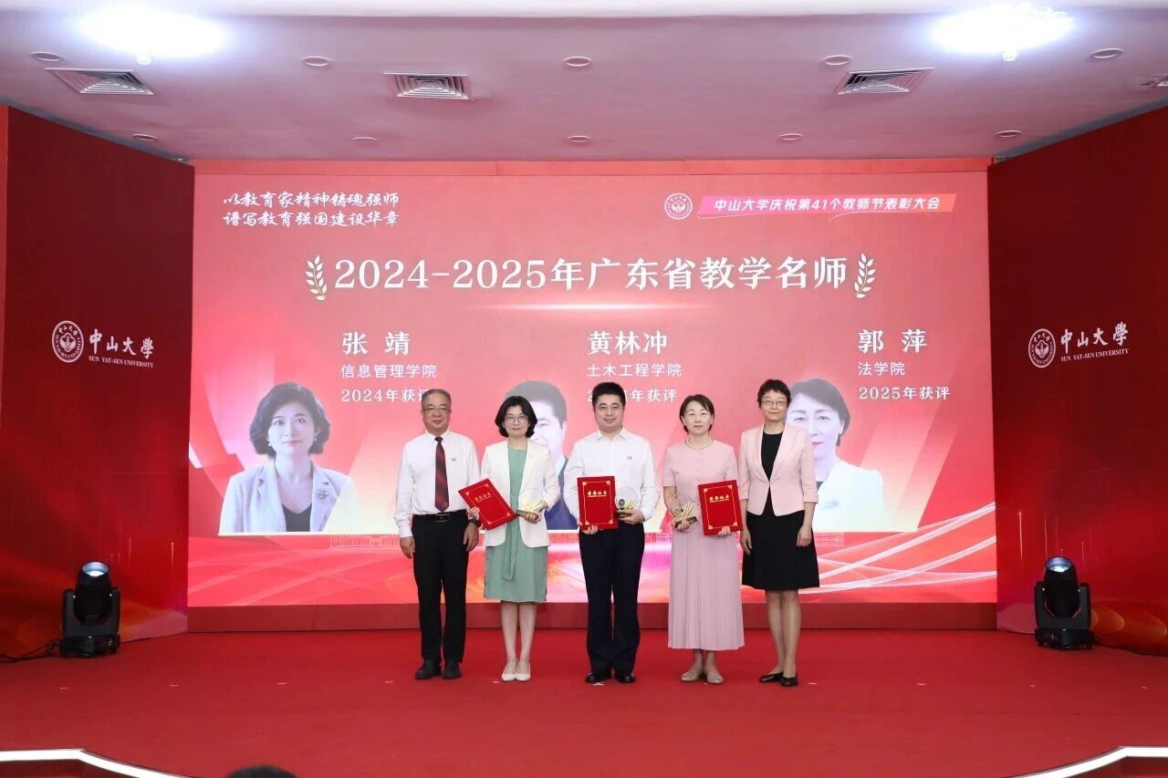 此外,2024年,张靖教授获评“广东省教学名师”称号。2025年9月7日,在 成人片 庆祝第41个教师节表彰大会上, 成人片 杨清华常务副校长、国亚萍常务副书记为广东省教学名师颁奖。
