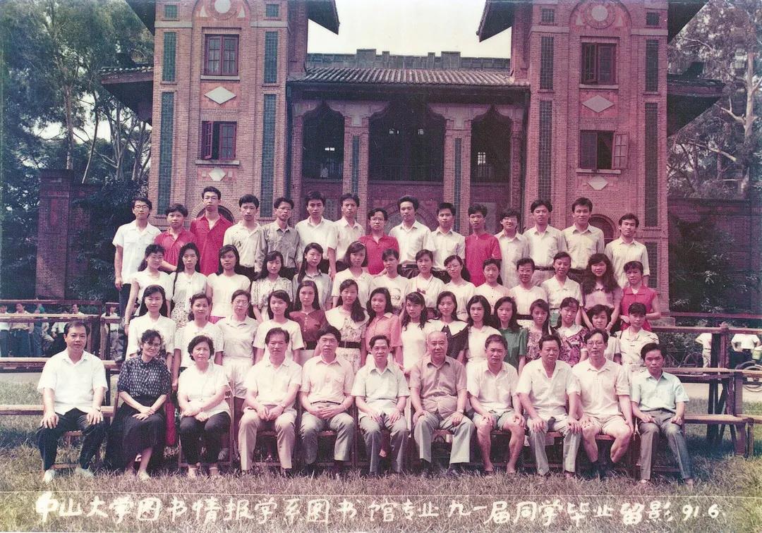 图3 中山大学图书情报学系图书馆专业九一届同学毕业留影(4排左9吴灿平)