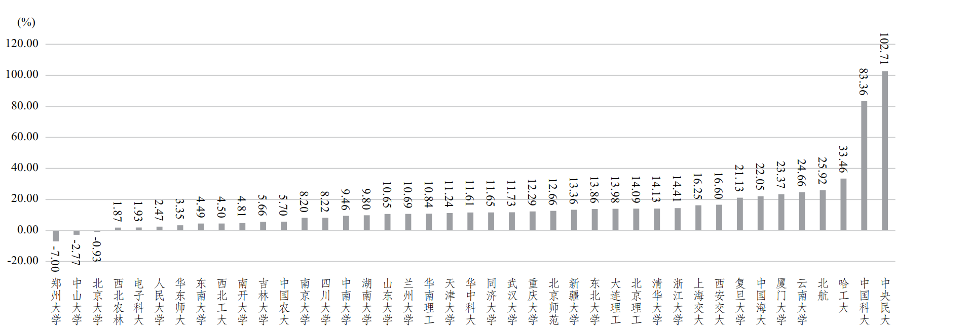 表2 2021—2022 年中国一流大学经费预算增长情况(%)